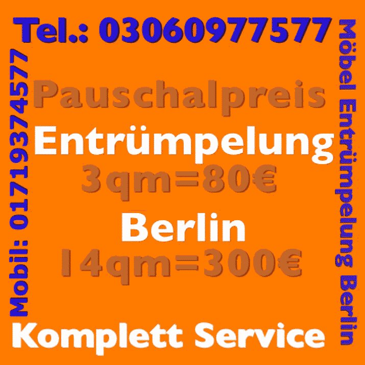 Aufgrund unserer langjährigen Erfahrung, Praxis im Bereich Wohnungsauflösung 14qm300euro Entsorgung beauftragt uns inzwischen eine Vielzahl an Kunden dies seit vielen Jahren. Denn wir bieten Wohnungsauflösung zum kleinen Preis. Neben unserem Angebot der kompletten Wohnungsauflösung kostenlos Wohnungsauflösung 14qm300euro Entsorgung Wohnungsentrümpelung Berlin sorgen wir selbstverständlich auch für den Abtransport die fachgerechte Wohnungsauflösung 14qm300euro Entsorgung sperriger Gegenstände Hausrat aller Art. Sie benötigen Platz für neue Möbel oder planen neue PC-Anlagen oder den Kauf von Elektrogeräten? Wir entsorgen zuvor schnell komfortabel Ihre alten Gebrauchsgegenstände Elektrogeräte wie ausrangierte Fernseher, defekte Computer oder Telefone, Handys Smatphones. Damit schaffen Sperrmüllabholung schnell, sauber zum pauschalen Preis Raum für Ihre Neuanschaffungen. Mit uns an der Seite wird die Möbel Wohnungsauflösung 14qm300euro Entsorgung in zum Kinderspiel. Mobiliar, Gegenstände aus Holz, Sperrmüll Altmetall, aber auch alte Sofas, Pappe, Umzugskartons, Papier Verpackungen Zeitungen entrümpeln wir in besonders kurzer Zeit und garantieren praktisch konkurrenzlose Preise.